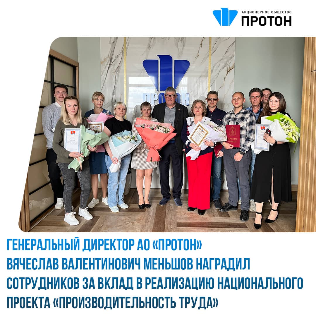 Сегодня на предприятии АО «Протон» состоялось торжественное награждение сотрудников, внесших весомый вклад в реализацию проекта «Сокращение затрат в потоке изготовления светодиодного светильника Трасса-3», реализуемого в рамках национального проекта «Производительность труда».